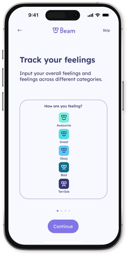Beam is unique. It offers real-time, AI-driven insights and personalized support to help you navigate our complex and uncertain world. It empowers you to understand and manage your stress to boost your resilience. Beam is a trusted, effective, and affordable well-being solution tailored to your specific needs.