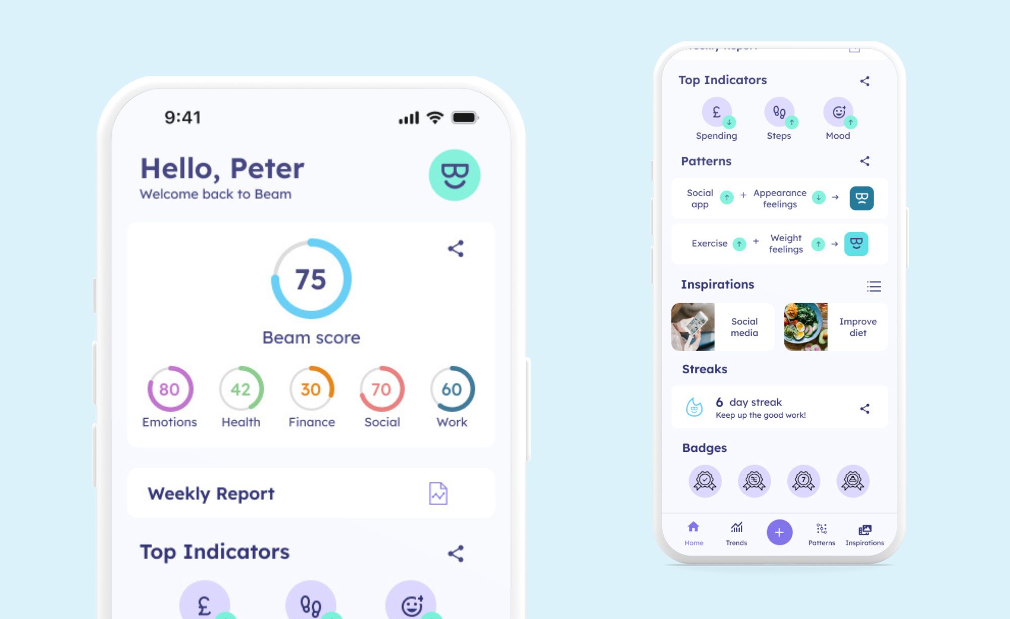 Beam generates data-driven insights, enhancing your self-knowledge and emotional intelligence. By analysing your specific patterns and behaviours, you gain a deeper understanding of your life over time. This awareness allows you to make better decisions, and lead more balanced and fulfilling lives.