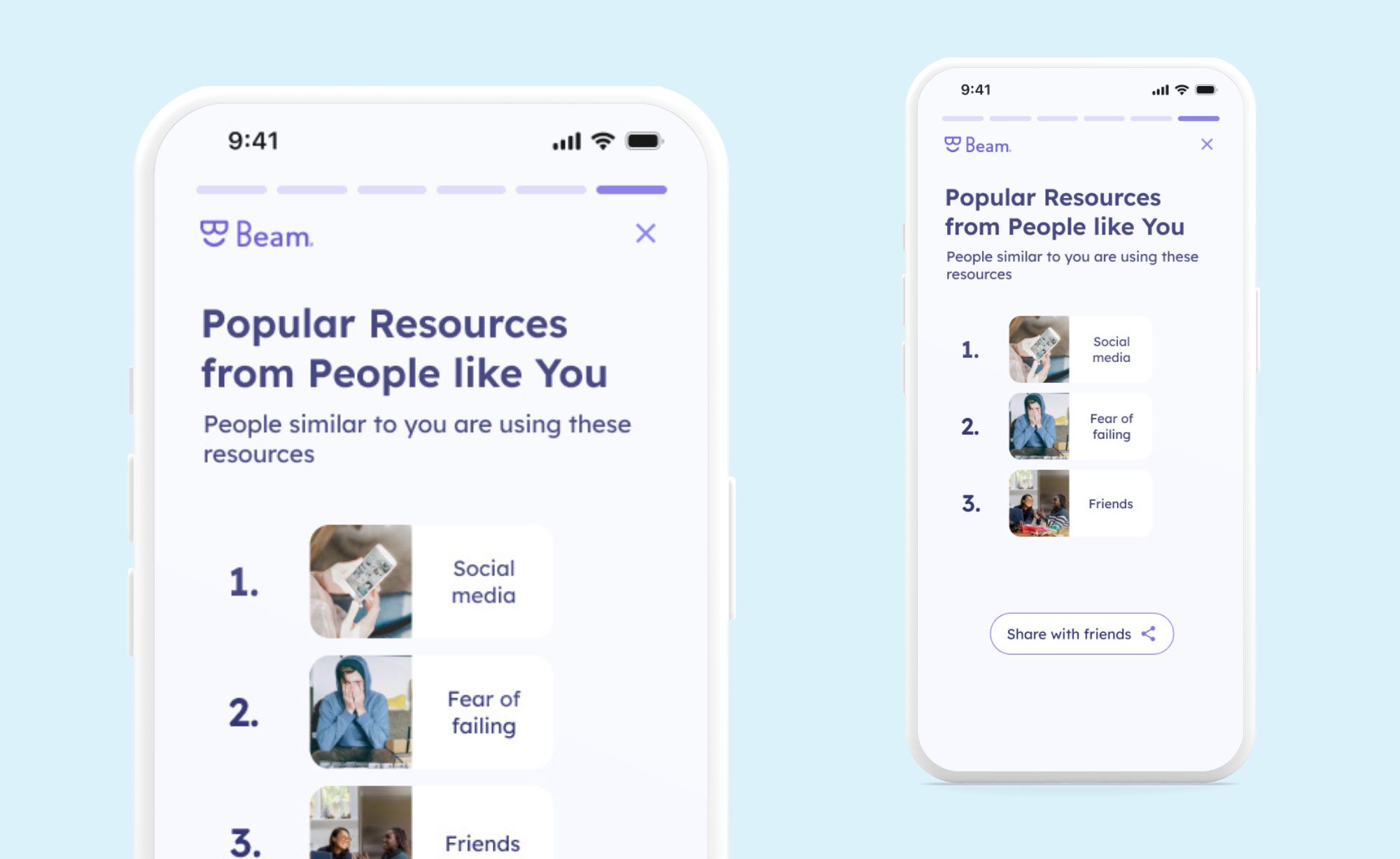 You aren't alone as everyone experiences micro-stress. You can privately compare your well-being trends with other Beam users with similar triggers and patterns to yourself. All data is aggregated and anonymised to protect everyone's privacy. You can share your progress to inspire others and showcase your journey.
